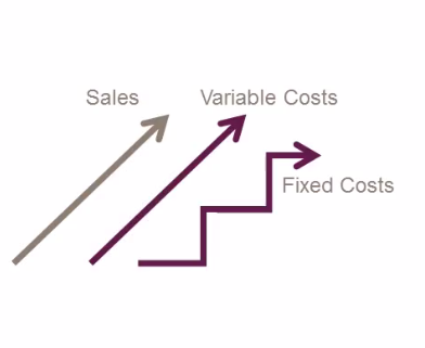 The relationship between fixed and variable cost on sales is easily illustrated below.